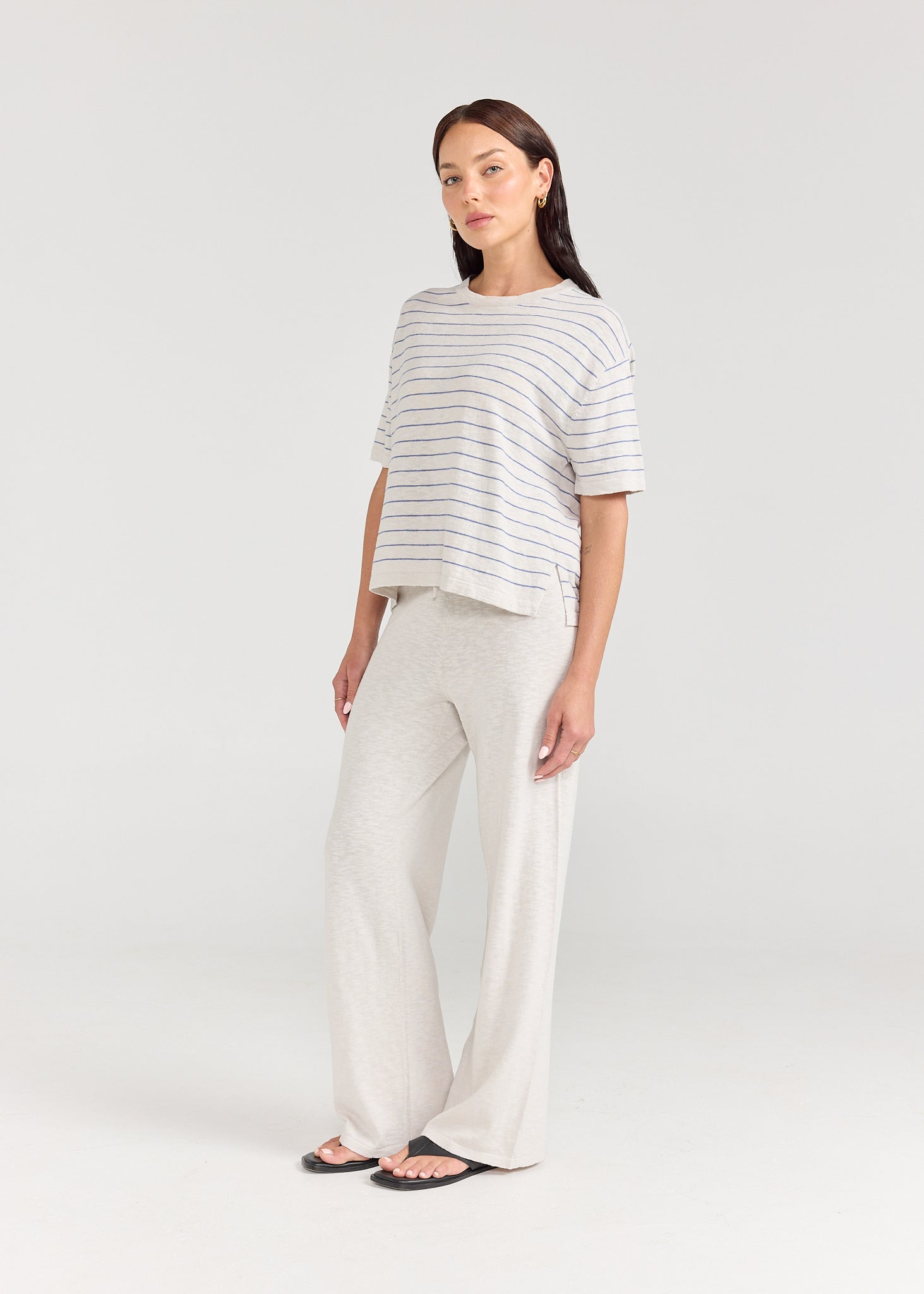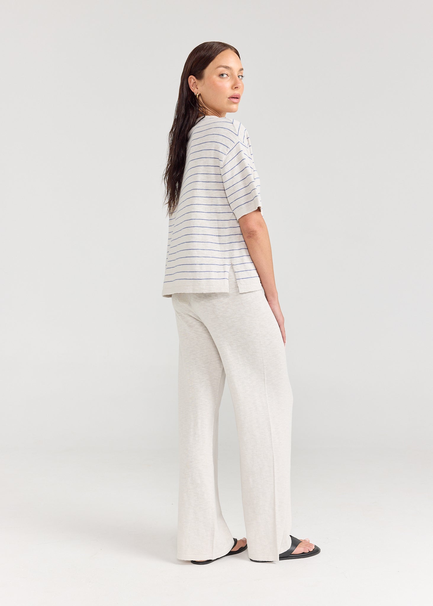 Designed with a relaxed body fit, this tee features a classic crew neckline and is crafted from our 75% Cotton, 25% Linen luxe fabrication. Pair it back with the braelyn short or everyday pant for the perfect lounge set.