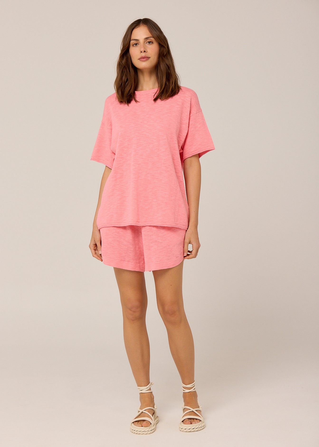 Linen jersey perfection. Crafted from 75% Cotton, 25% Linen, the Braelyn Short is the ultimate lightweight lounge short. Featuring an elasticated high waist, side scooped hem and in seam pockets. Pair with the Sevilla Tee for the perfect luxe lounge look.