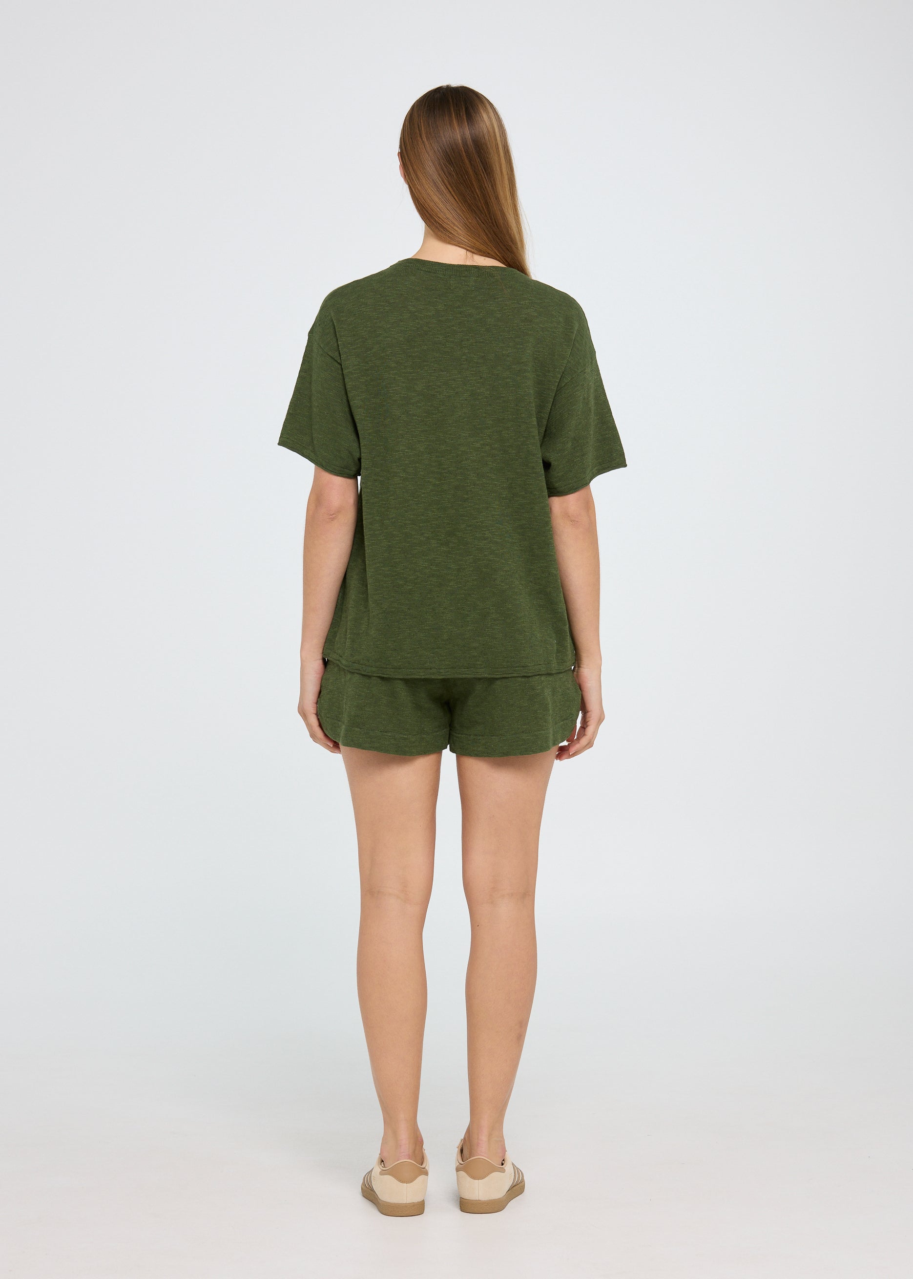 Linen Jersey perfection. Crafted from 75% Cotton, 25% Linen, the Braelyn Short is the ultimate lightweight lounge short. Featuring an elasticated high waist, side scooped hem and in seam pockets. Pair with the Sevilla or Lina Tee for the perfect luxe lounge look.