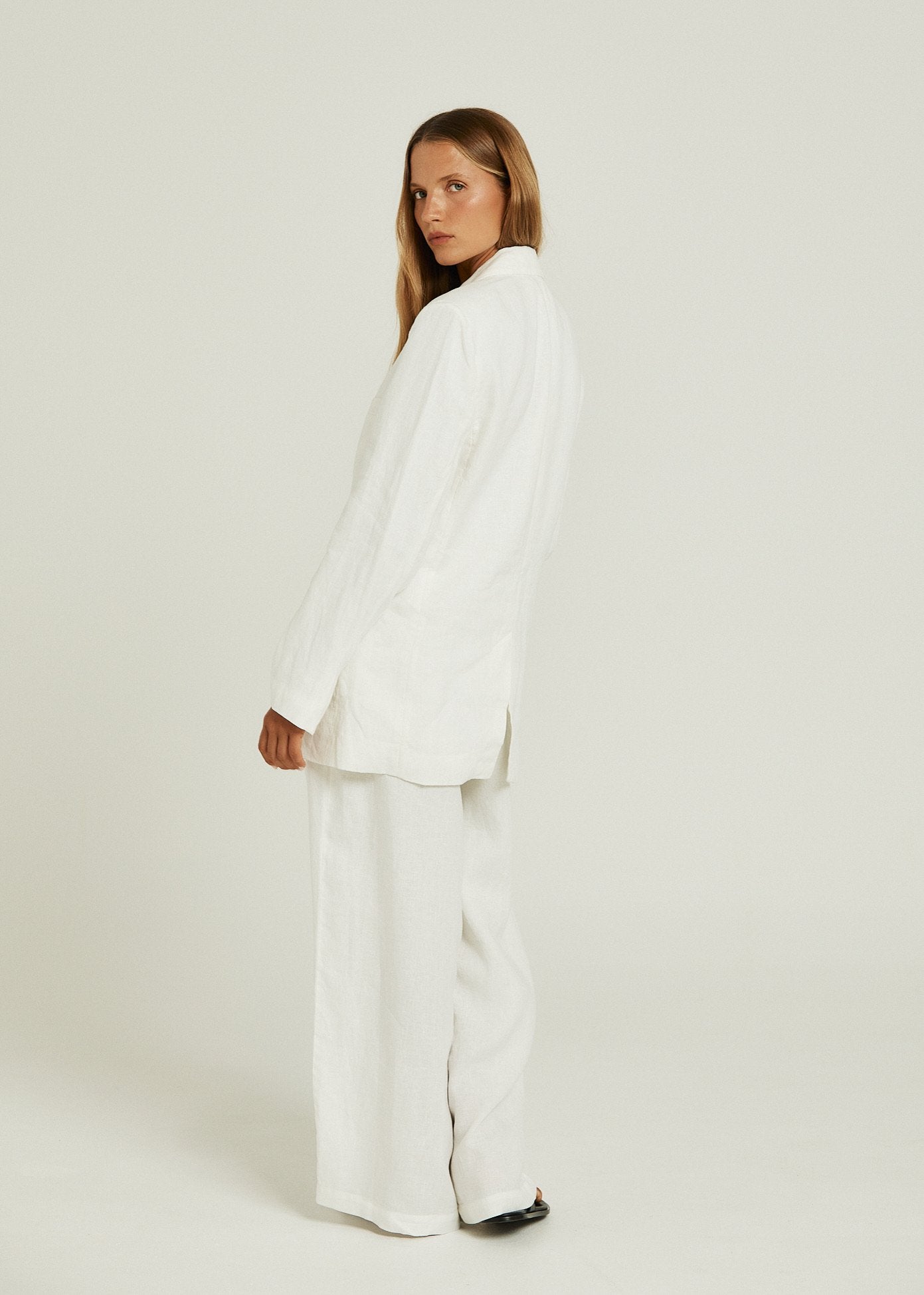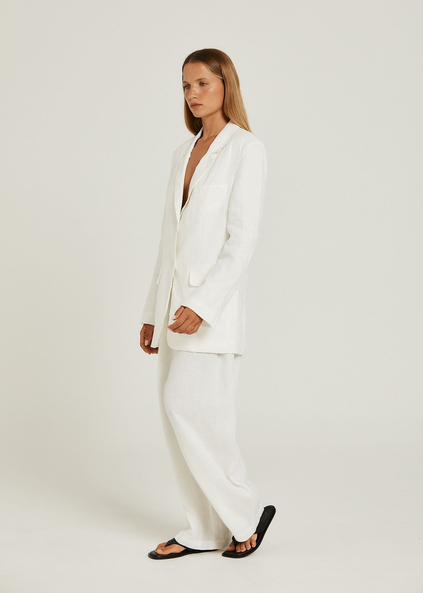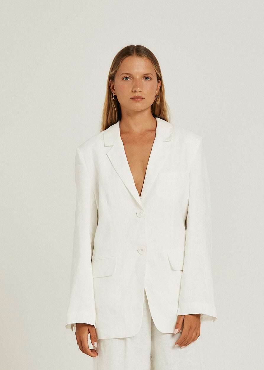 Introducing the Elle Blazer, crafted in 100% Linen, this fully lined blazer is a must-have transeasonal piece for your wardrobe. Featuring a lapel collar, flap pockets and back vent, this blazer pairs back perfectly with the Ema Pant.