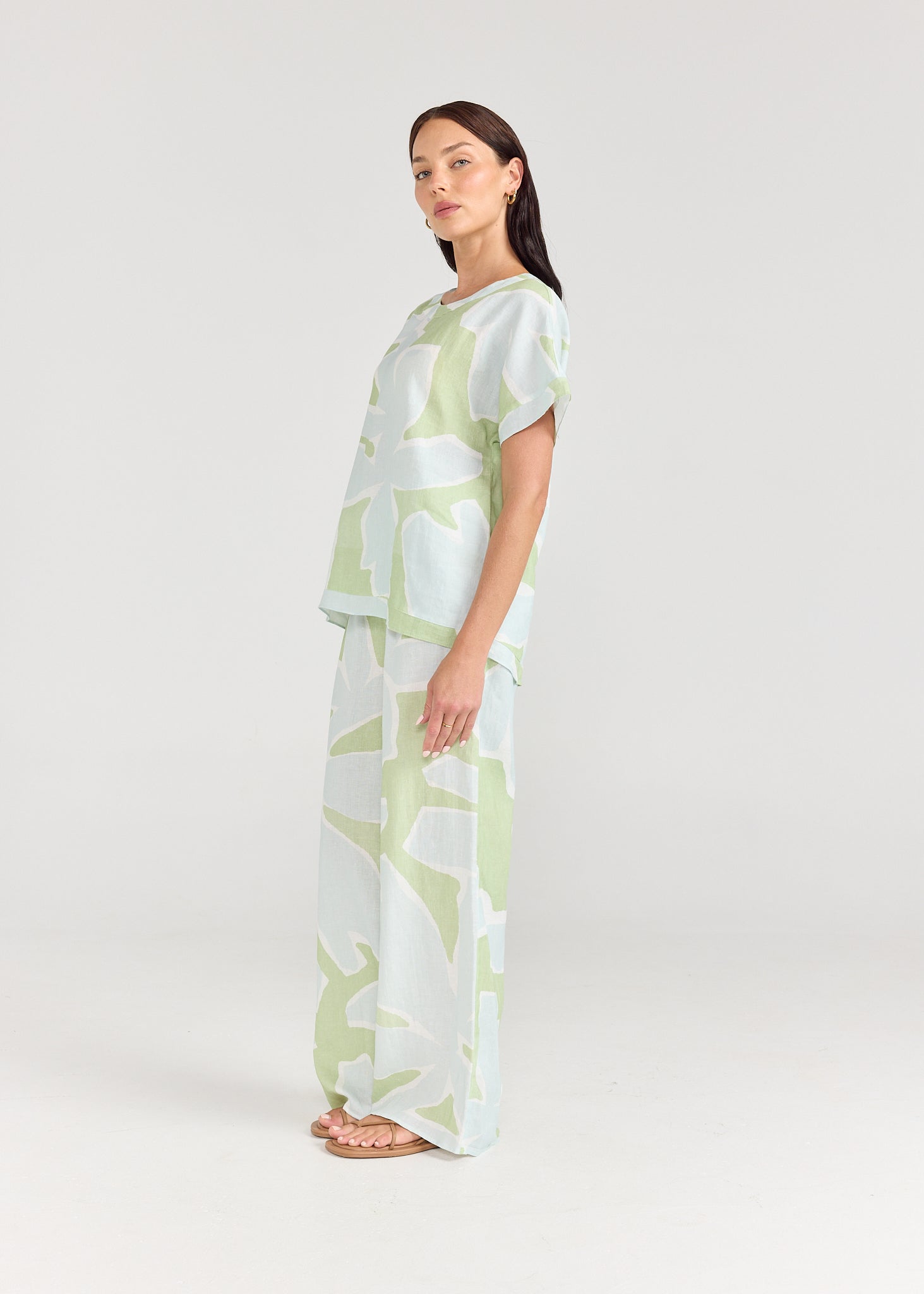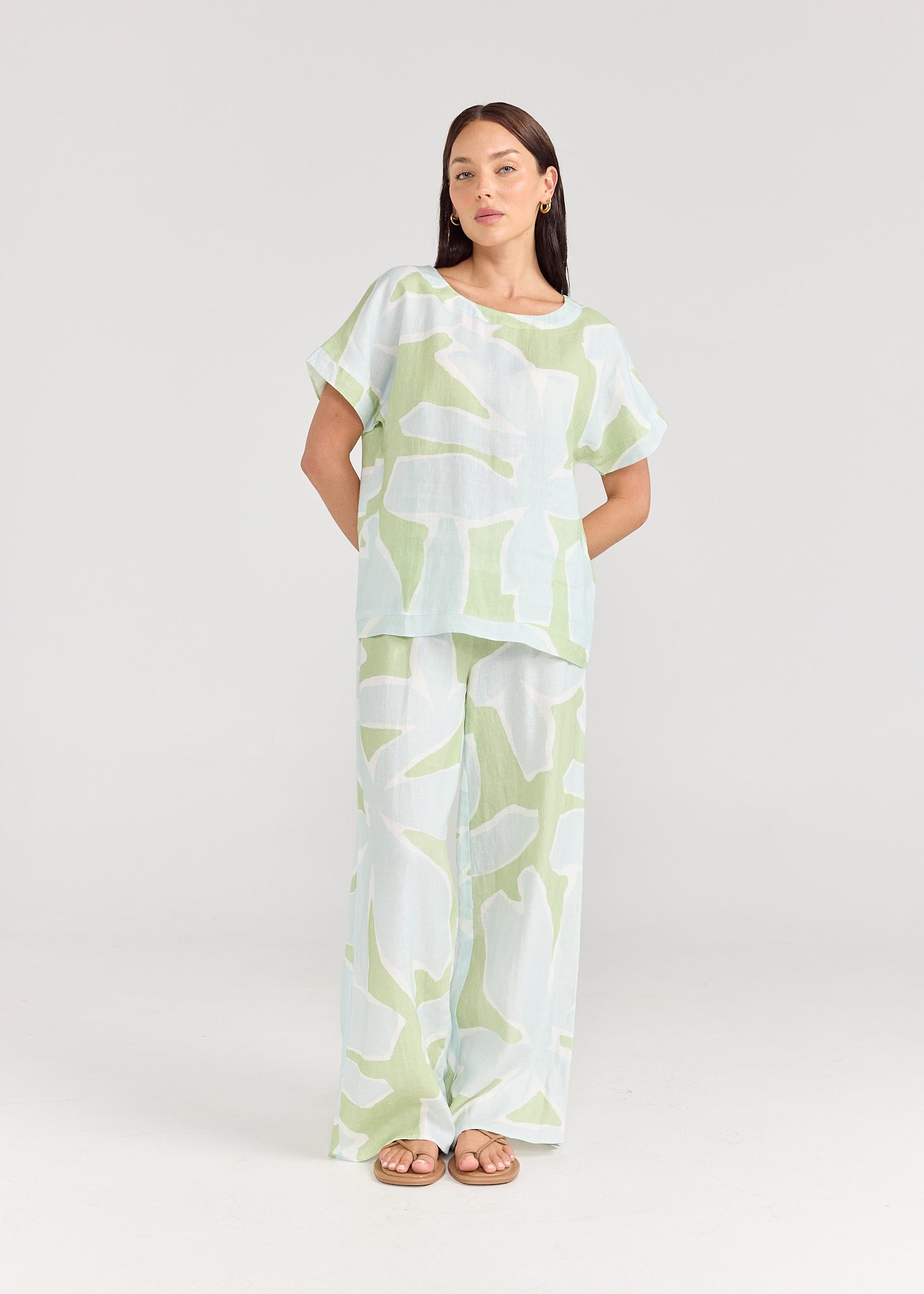 Made from 100% Linen, the Elyse Top is a favourite! Featuring a rounded neckline, cap sleeves and a relaxed silhouette. This classic top will be your go to all year round. Pair it back with our Simba Short in the matching Palma print for a stand out set or back with jeans for a relaxed look.