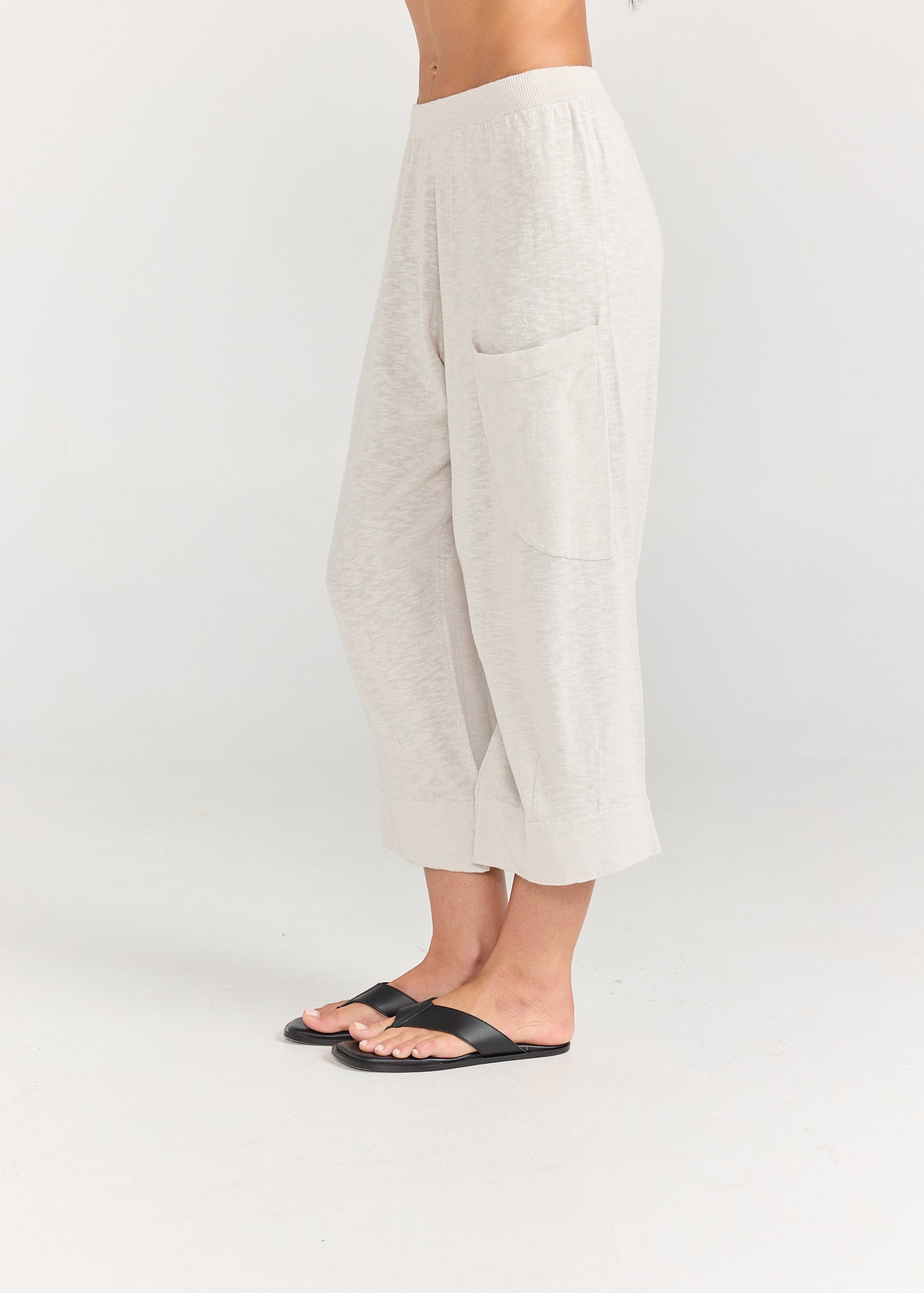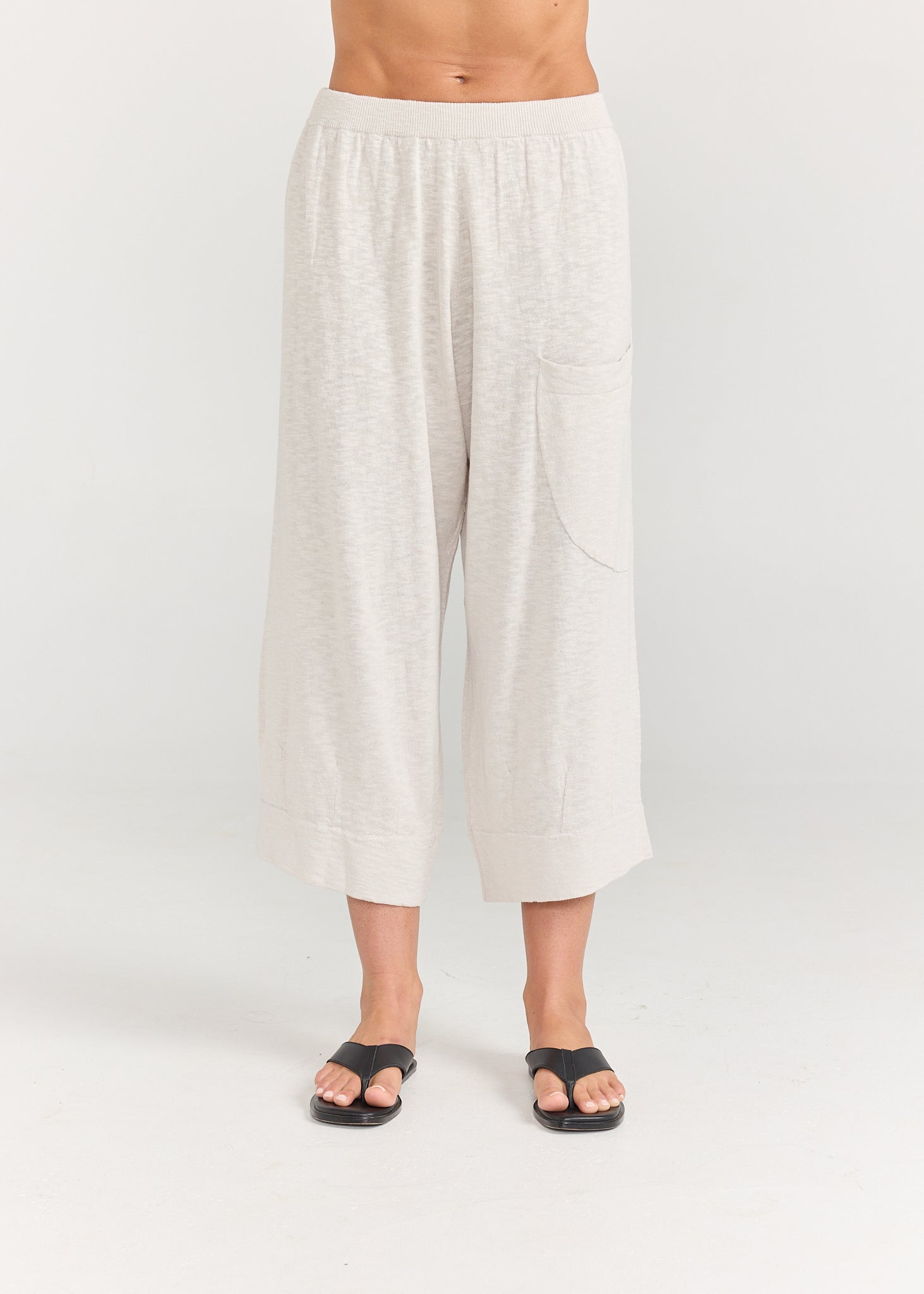 Linen jersey perfection. Crafted from 75% Cotton, 25% Linen, the Kamiyah Pant is a wardrobe staple whether you are lounging at home or running errands. Featuring a soft elastic waist, back patch pocket and relaxed leg. Pair with the Lina Top for an effortless look.