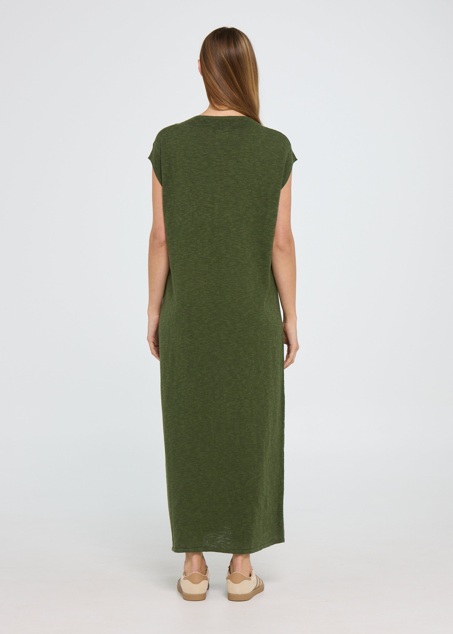Forever flattering, this essential midi dress is crafted from our super soft luxe Linen Jersey fabrication. Featuring a V neckline and straight simple silhouette, perfect for every day wear.