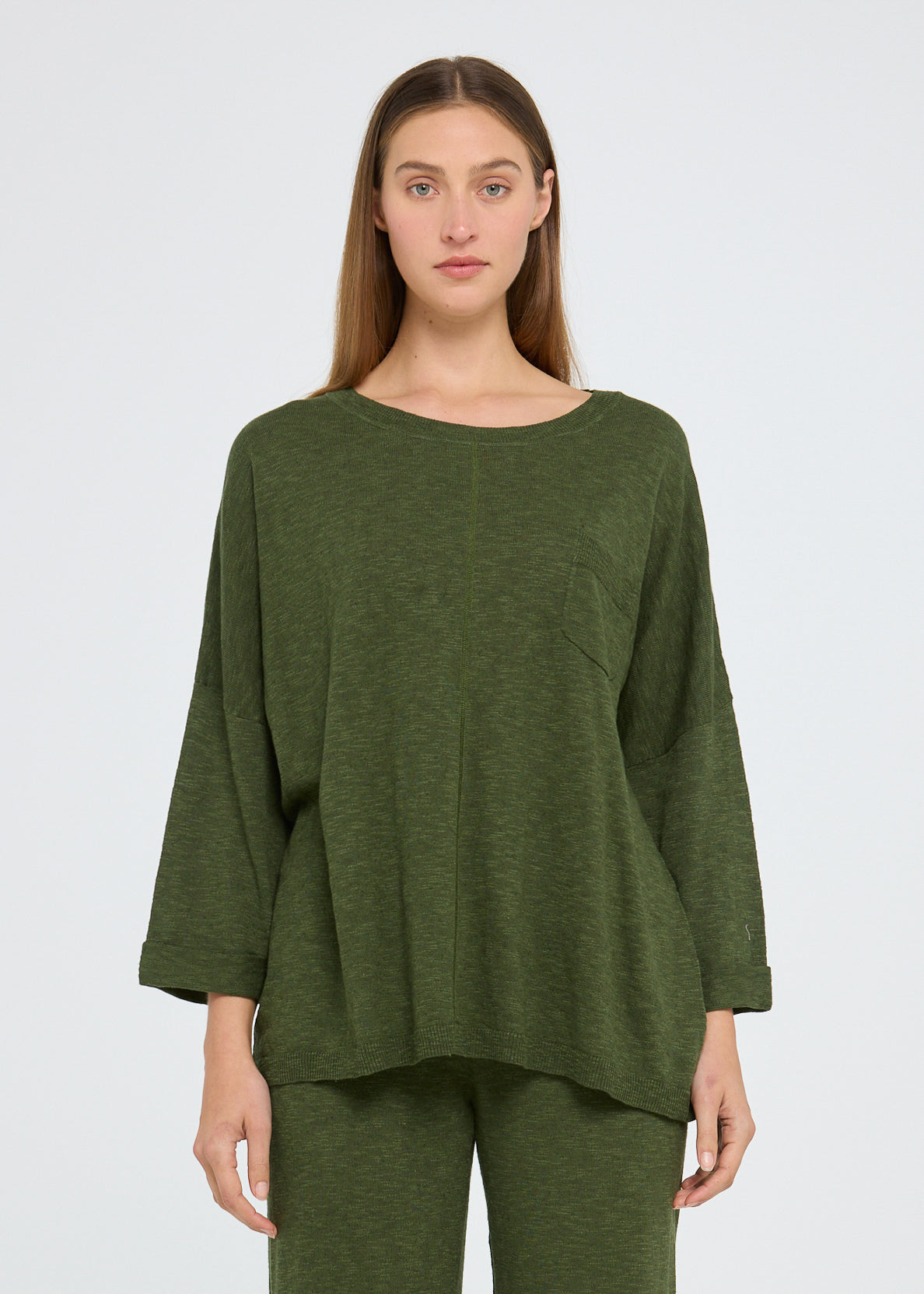 Linen Jersey perfection. Crafted from 75% Cotton, 25% Linen, the Lina Top is perfect for those wanting a bit more sleeve. Featuring a ribbed rounded neckline, exposed centre front seam and 3/4 sleeve, this oversized top pairs perfectly with the Everyday Pant for the ultimate cosy winter set.