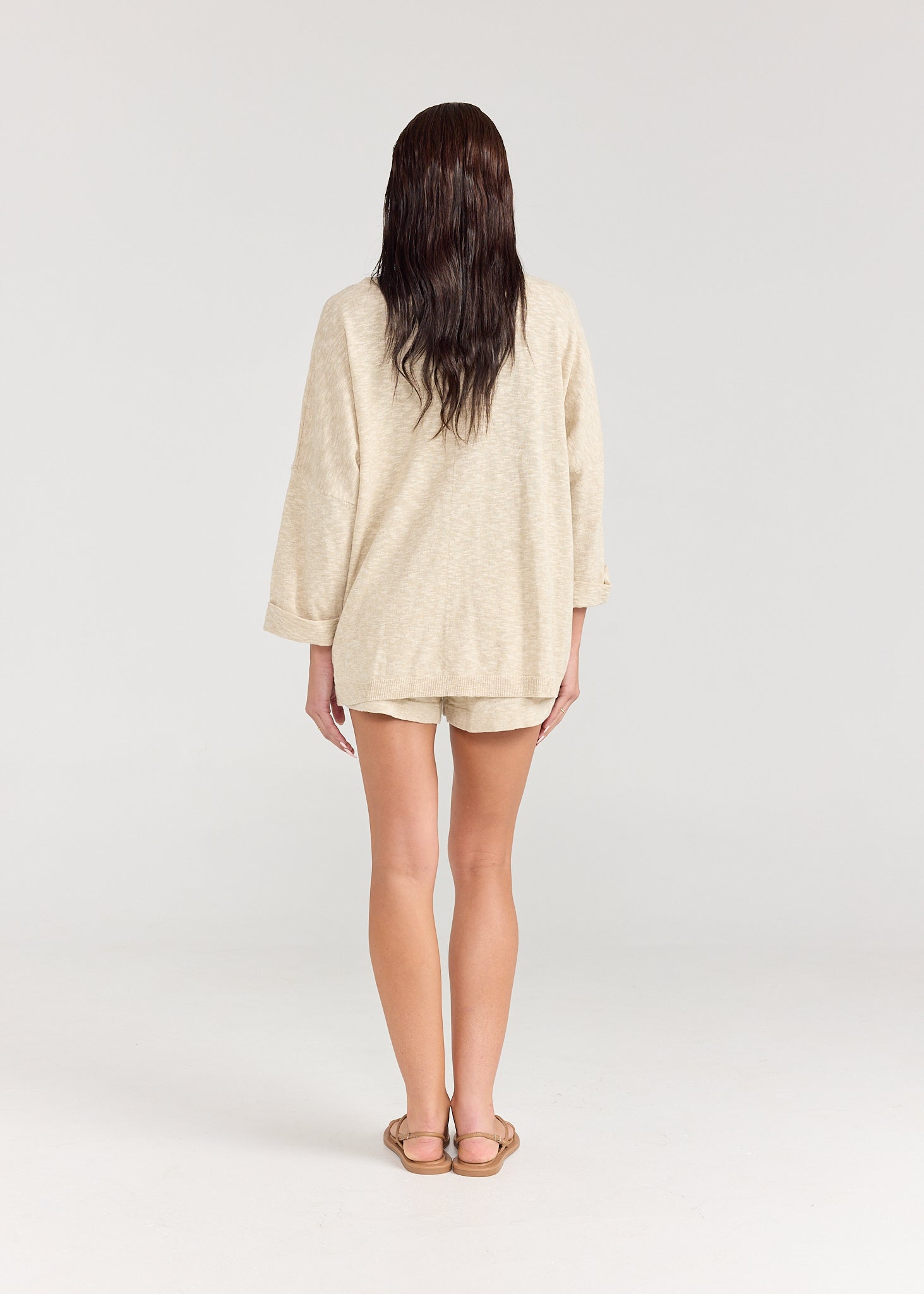 Linen jersey perfection. Crafted from 75% Cotton, 25% Linen, the Lina Top is perfect for those wanting a bit more sleeve. Featuring a ribbed rounded neckline, exposed centre front seam and 3/4 sleeve, this oversized top pairs perfectly with the Braelyn Short and Allyson Pant.