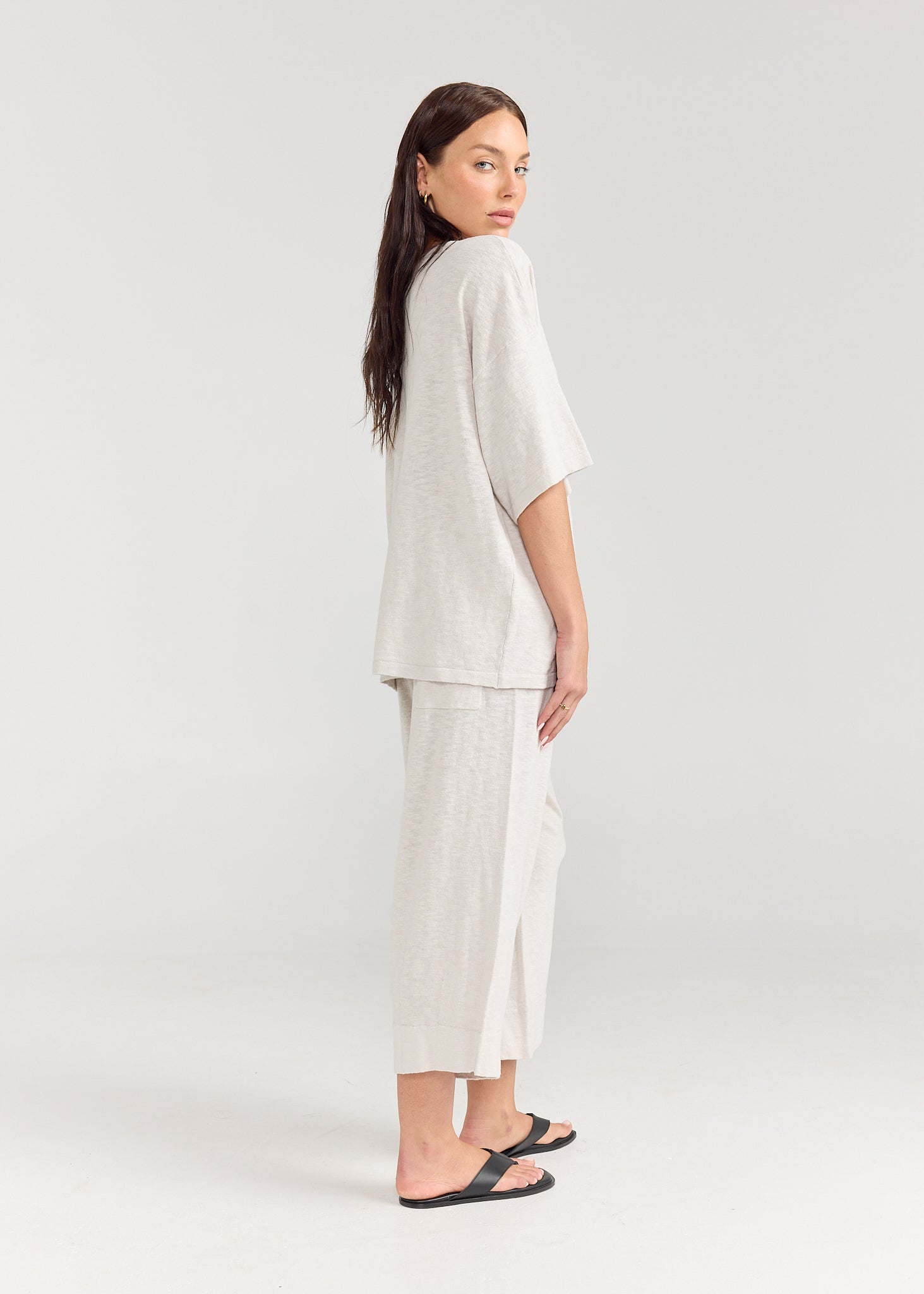 Linen Jersey perfection. Crafted from 75% Cotton, 25% Linen, the Savannah Tee is perfect for those wanting a bit more of an oversized T-shirt. Featuring an elbow length drop shoulder. This oversized top pairs perfectly with the Kamiyah and Everyday Pant.