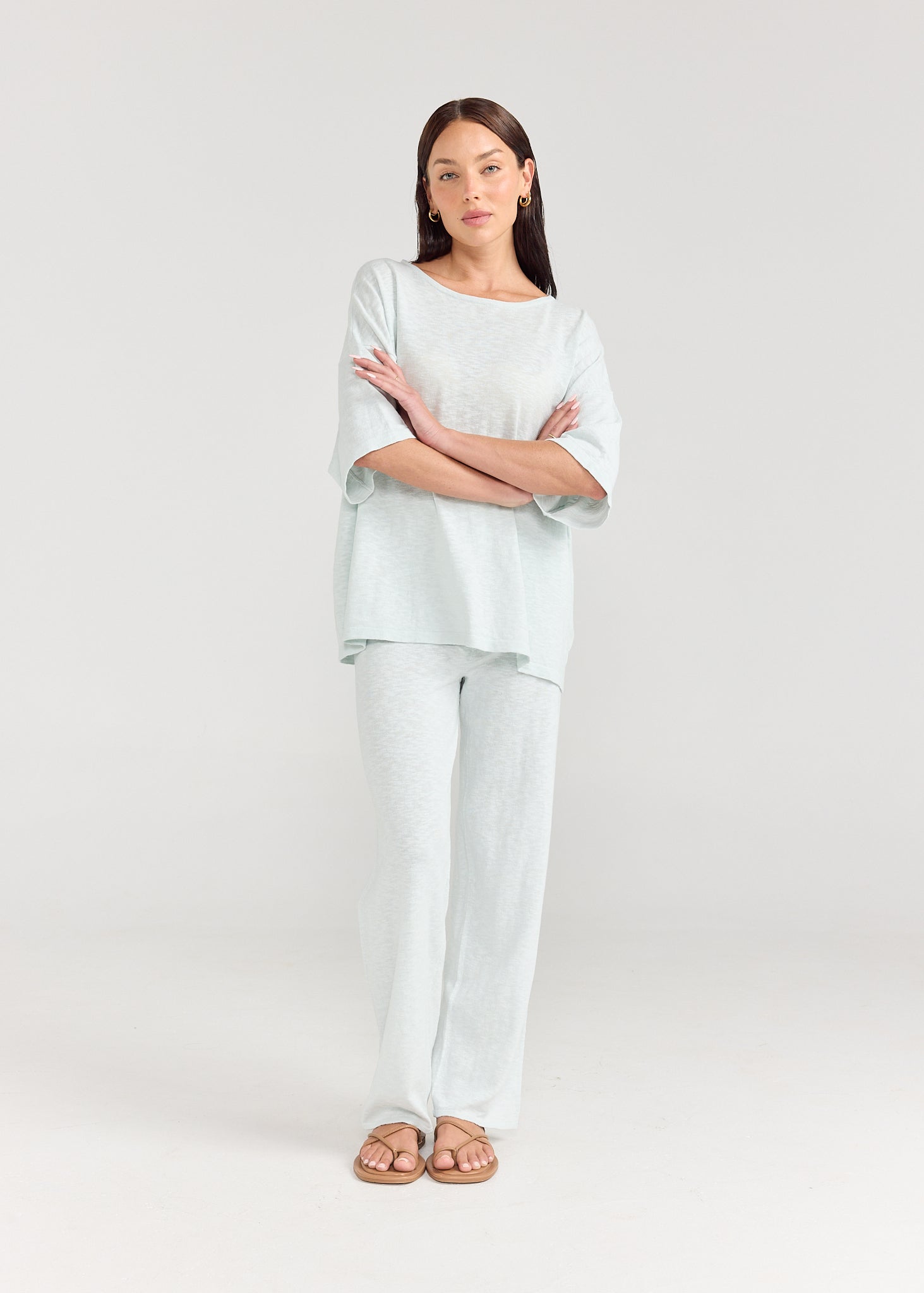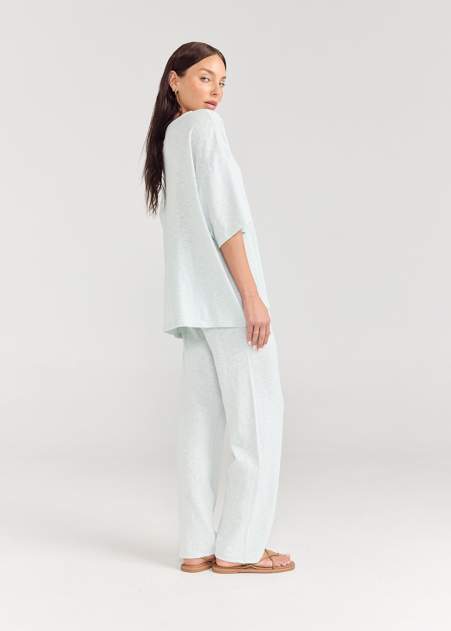 Linen Jersey perfection. Crafted from 75% Cotton, 25% Linen, the Savannah Tee is perfect for those wanting a bit more of an oversized T-shirt. Featuring an elbow length drop shoulder. This oversized top pairs perfectly with the Kamiyah and Everyday Pant.