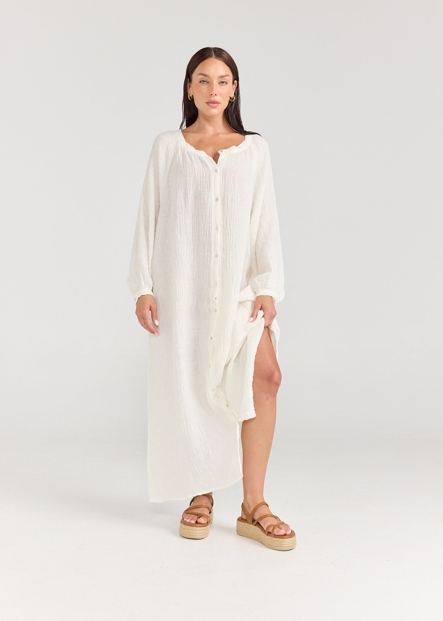 Our newest fabrication & style. Our stunning crinkle linen is a must have this summer. The Sienna dress flowers beautifully for an every day dress. Over bathers, dressed up for lunch or brunch.