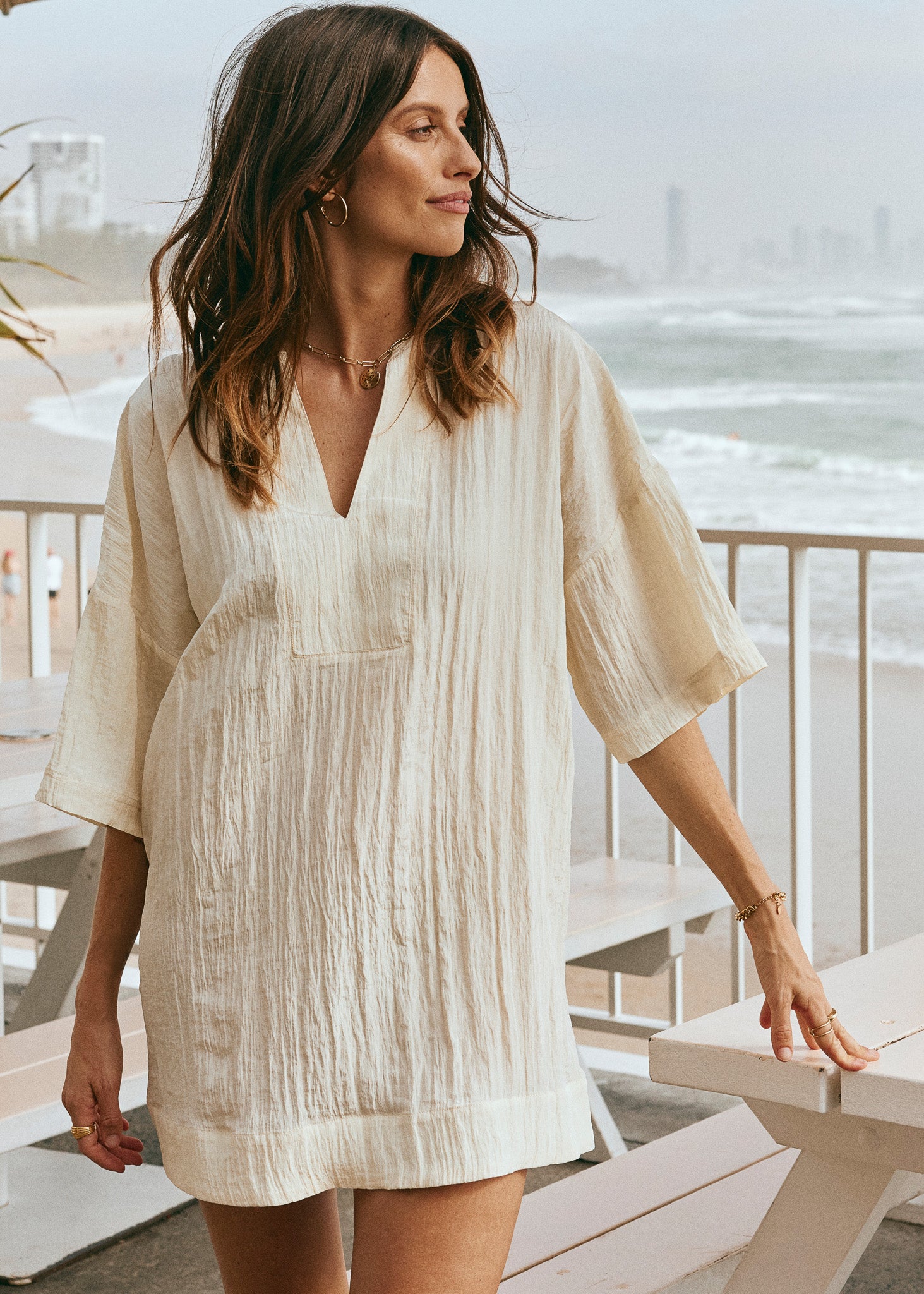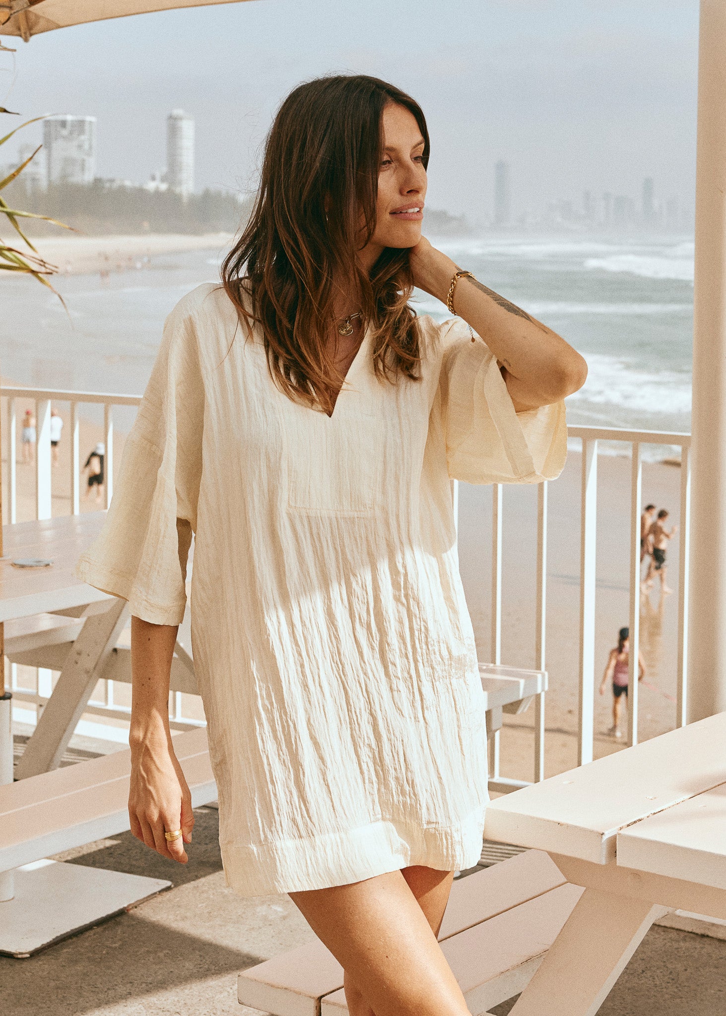 For warmer days ahead, reach for the Summer Tunic. Crafted in a luxe soft crinkle fabrication, this mini length style features a v-neckline and drop shoulder. Wear as a mini or pair with your favourite pant style for an elevated look.