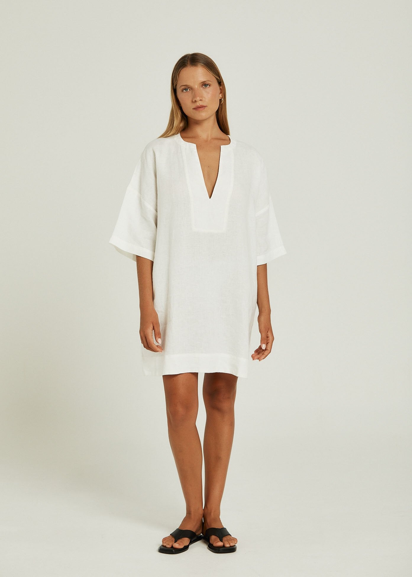 For warmer days ahead, reach for the Summer Tunic. Crafted in 100% Linen, this mini length tunic features a v-neckline and drop shoulder. Wear as a mini or pair with the Catalina Pants for an elevated look.